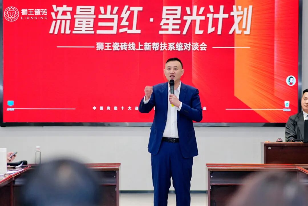在随后的发布环节,狮王瓷砖张玉森,他以专业视角阐释了新帮扶系统构建的“用户→渠道→产品”正向循环,详细讲解精准获客的小红书渠道全新运营打法,以及总部在人、财、物上的全方位投入,为终端提供线上线下联动的全渠道运营完整解决方案。