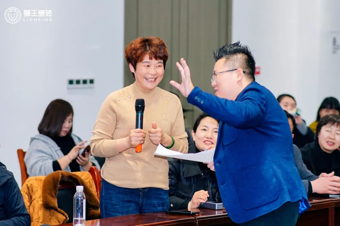 下午的“流量当红·星光计划”线上新帮扶系统对谈会由家居建材新媒体营销专家胡俊主持。他深入分析2026年陶瓷行业营销新趋势,聚焦线上流量转化、全域引流获客等核心议题,与狮王多部门负责人组成的代表团,针对小红书对赌代运营配合、抖音运营转化低、区县级门店线上运营等终端实际经营痛点,一一给出具体落地的解决方案。与此同时,展厅内四大特色体验区人气爆棚,经销商亲手体验新品硬核性能,沉浸式掌握获客与销售实操技巧,现场互动频频。