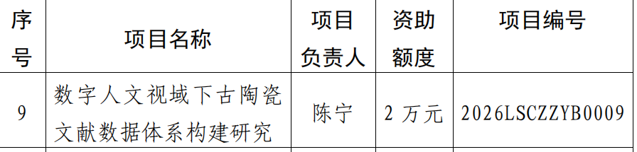 (本网讯:陈宁)近日,中国图书馆学会公布了最新一轮科研项目的立项结果,我校图书馆副研究馆员、武汉大学访问学者陈宁牵头申报的课题“数字人文视域下古陶瓷文献数据体系构建研究”获批资助类立项,这是我校图书馆首次获批国家级学会科研项目立项。该课题的研究与实施,将为图书馆打造服务地方智慧体系提供新思路,将进一步推动我校图书馆在科研创新以及服务地方的步伐。