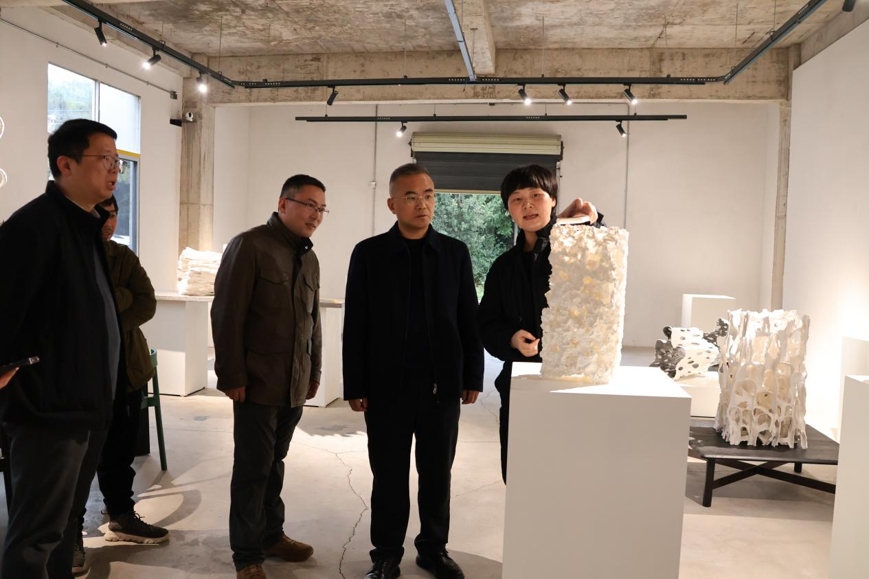 调研过程中,蒲守智与老师们亲切交谈,仔细察看工作室的教学科研环境,细致询问科研项目推进情况,深入倾听艺术创作背后的思考与探索。他对各位老师长期扎根瓷都沃土、坚守匠心筑梦的治学精神表示赞许,对他们深耕陶瓷领域、为学校学科建设与科研创新作出的贡献表示衷心感谢。