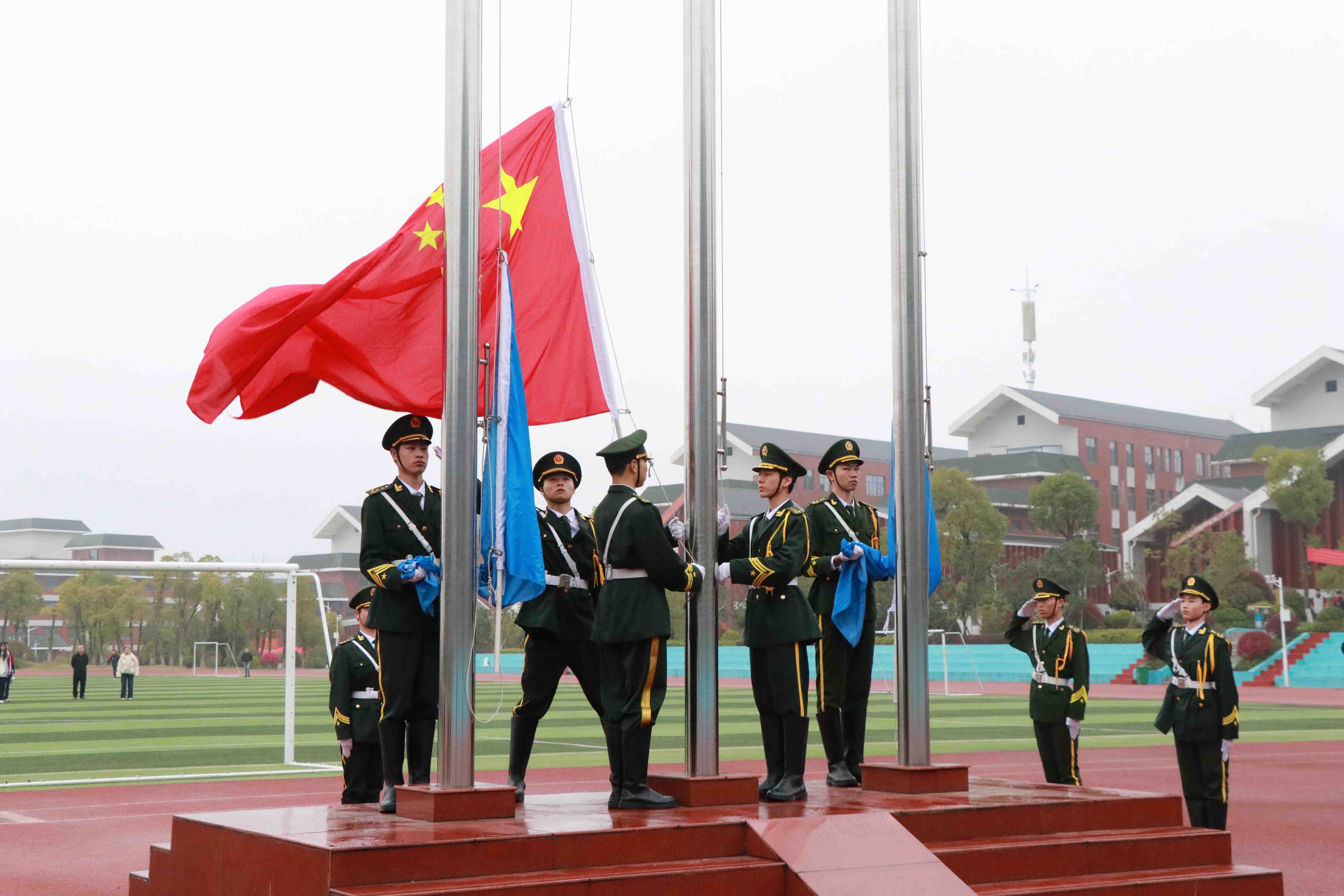 开幕式伊始,五星红旗与校旗在朝阳中冉冉升起,全体人员以庄重的姿态表达对祖国、对学校的崇敬与热爱。