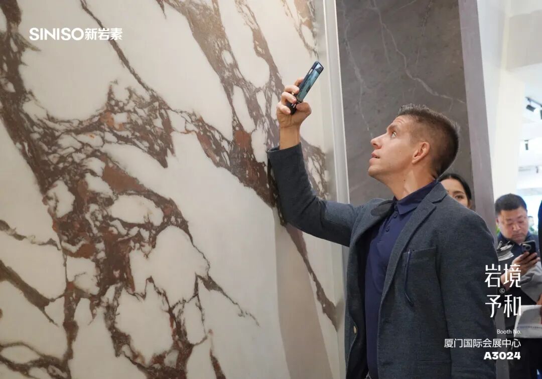 在厦门石材展的聚光灯下,新岩素面对的不仅是挑剔的海外石材商、大型工程采购商,还有那些寻找差异化产品的全球顶尖设计师。展会开幕的第一天,新岩素便接待了一波又一波的海外客户,分别来自澳洲、巴西、韩国、比利时等国家和地区。