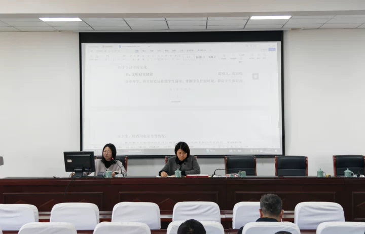会议围绕大学生思政教育、心理健康、学风建设、评奖评优、寝室文明、就业指导、团学工作等全方面对新学期各项工作进行了部署。此外,对2024-2025学年优秀班主任和优秀班级进行了表彰,通过树立先进典型,激励全体队伍对标争先,营造比学赶超的良好氛围。