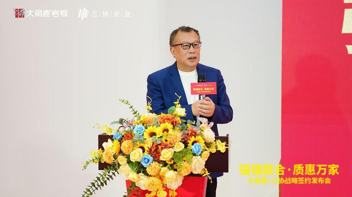 当前岩板需求向超耐磨、高品质、快交付等综合价值升级。大角鹿创始人南顺芝表示,品牌以超耐磨为核心优势布局岩板,并通过授权合作模式携手专业制造伙伴,实现稳定产能与高效交付。三协董事长陈胜利称,合作基于双方优势,旨在打造岩板行业新标杆。佛山市陶瓷行业协会会长尹虹认为,此次跨界联合顺应了行业规范化、高质量发展的趋势。