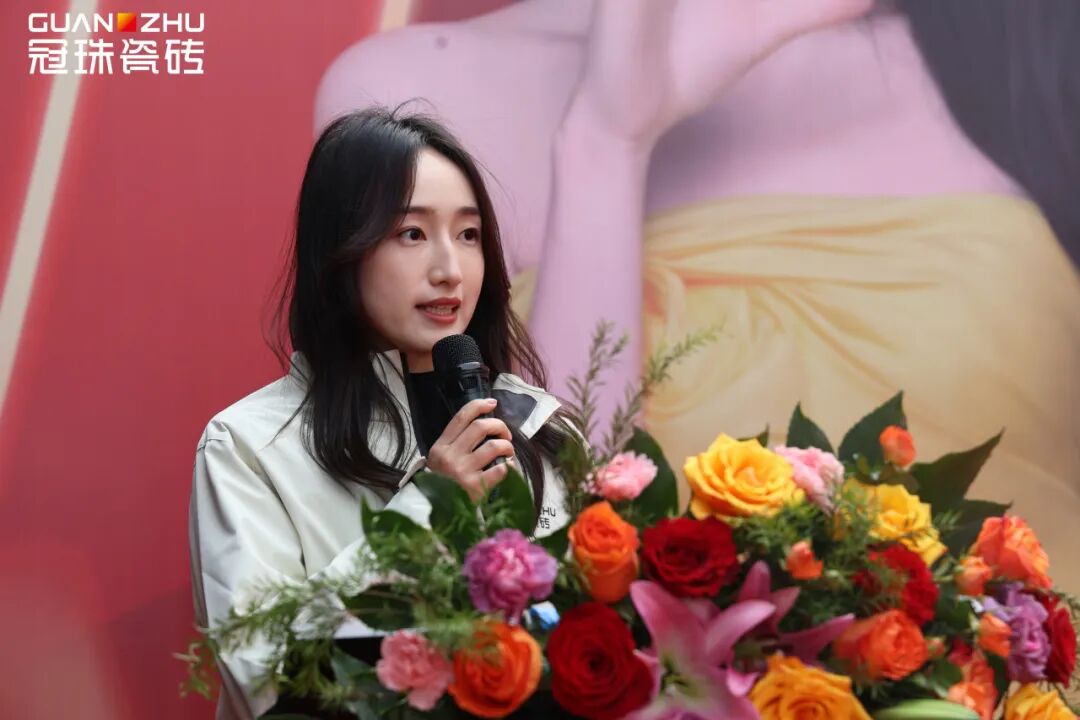 新明珠集团副总经理、冠珠瓷砖品牌总经理潘瀚作为品牌代表发表致辞。他表示,冠珠瓷砖30多年来始终与时代同频,以“人民对美好生活的向往”作为奋斗目标,2026年在产品、服务实现全面升级,切实践行“大美筑家”的承诺。品牌未来也将继续全力支持石家庄冠珠的发展,为当地消费者的美好人居建设贡献冠珠力量。