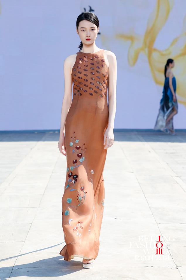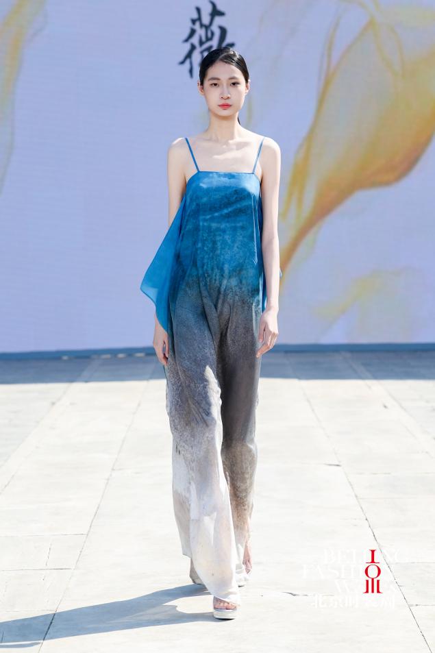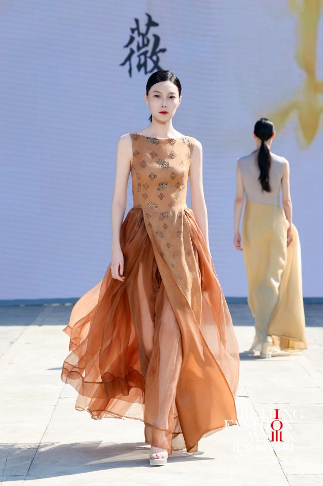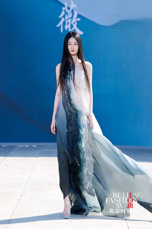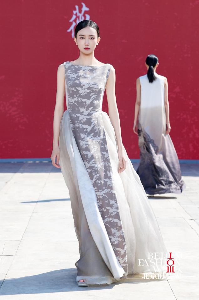 本次时装秀共计20套服装,李薇教授以宋代蓝地对鹿纹锦、南宋如意山茶暗花罗等文物为灵感,对文物纹样进行系统化解构与创新性活化——深入挖掘纹样背后承载的文化寓意,提取核心造型元素,重组构图逻辑,优化色彩搭配,让千年丝绸纹样适配现代审美语境,坚守非遗传承与创新融合,将丝绸织、染、绣等多项国家级非遗技艺融入国际时尚创作语言,以精湛手工赋予面料温润质感与文化厚度,让尘封千年的丝绸文物重新融入当下的时尚生活,成为连接古今、传递东方美学和丝绸文化的文化符号。