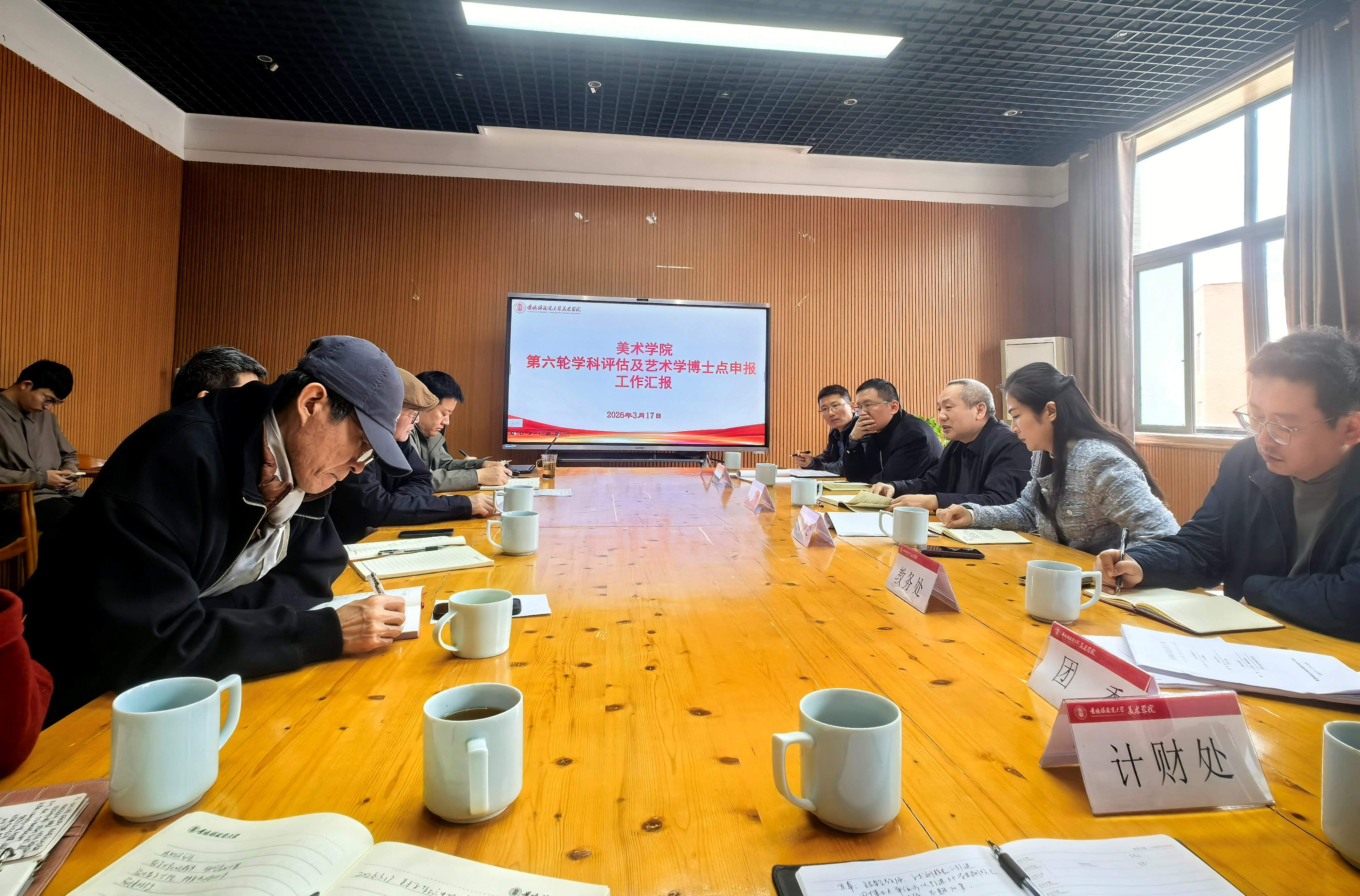 会上,美术学院相关负责人汇报了第六轮学科评估筹备进展及博士点申报工作,并就当前存在的短板弱项及下一步举措做了详细说明。人事处、研究生院、教务处、科技处、计划财务处等职能部门结合工作职责,分别就学科方向凝练、师资队伍结构优化、科研项目组织、经费保障等方面提出具体意见建议。