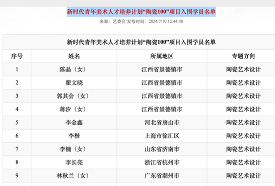 设计教研 | 设计学院教师入围新时代青年美术人才培养计划“陶瓷100”项目