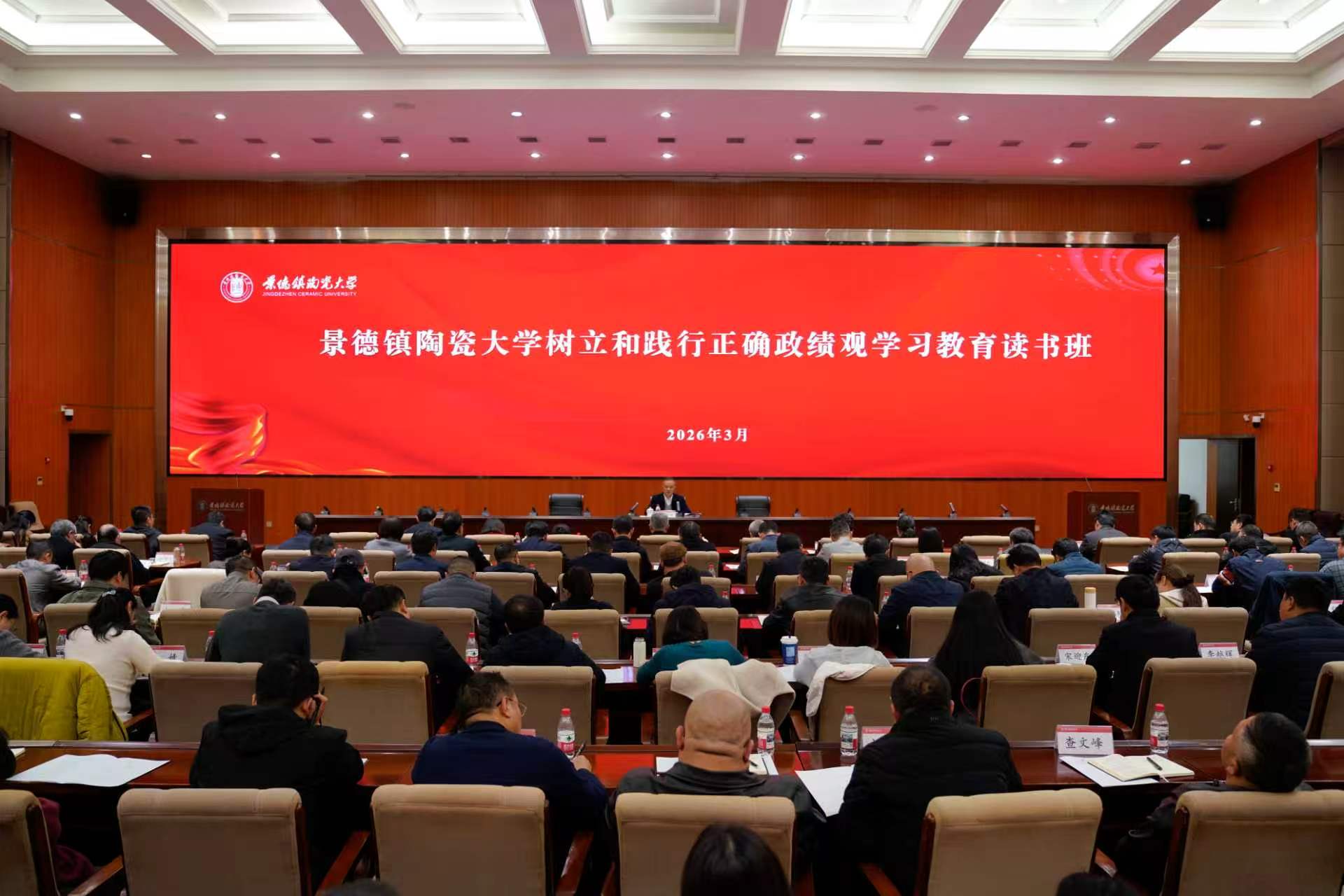 本网讯(党委宣传部)3月24日,景德镇陶瓷大学树立和践行正确政绩观学习教育读书班正式开班。校党委书记蒲守智出席开班式并讲话,围绕“以正确政绩观引领学校高质量发展”主题,与大家进行深入交流。他强调,要深入学习贯彻习近平总书记关于树立和践行正确政绩观的重要论述,以正确政绩观引领学校高质量发展,在新征程上跑好历史接力。