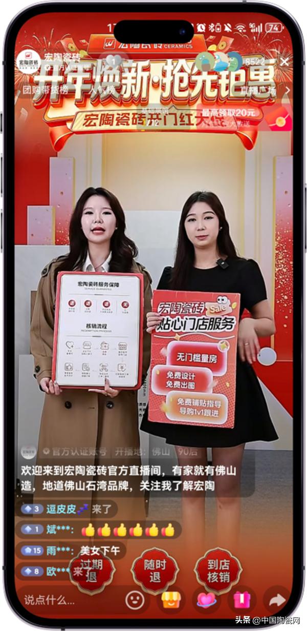 对经销商,大促是“总部带队实战”,帮助终端掌握直播运营、流量转化等新技能,积累长期能力。宏陶通过年年承诺、接受检阅,为消费者提供了“简化机制”,让选择更简单。