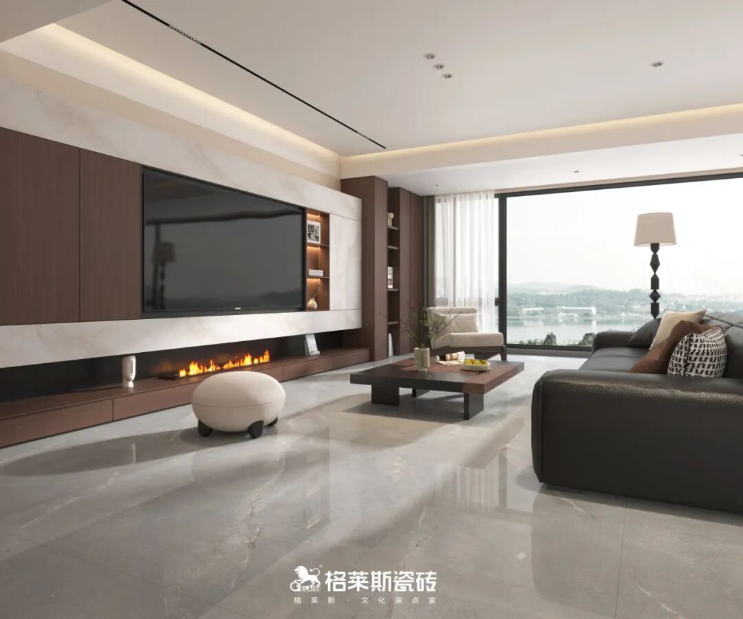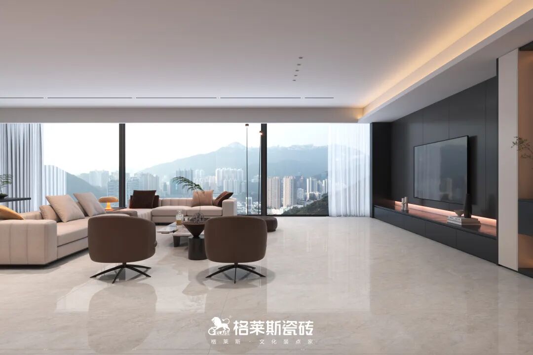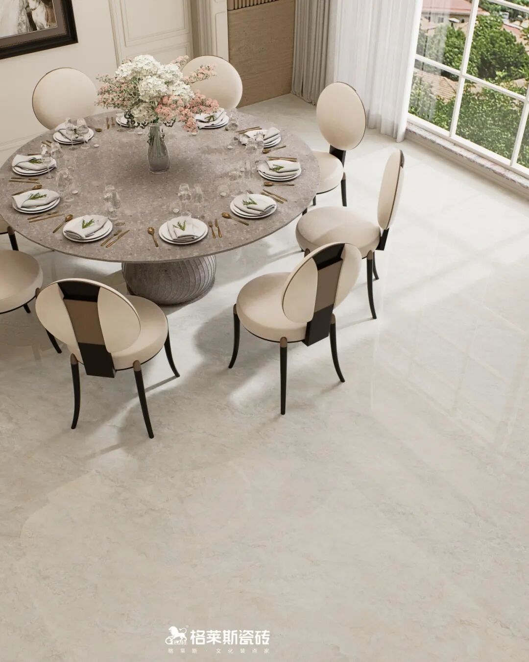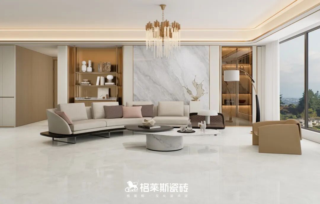 选择瓷砖时,不应盲目追随“哑光高级”等潮流,而应回归实际需求,兼顾美学与实用。采光不足的户型可选用亮光砖,配合合理灯光设计,能有效提升空间亮度与通透感。格莱斯奢理石系列采用高光釉面,增强光线反射,尤其适合改善昏暗环境。