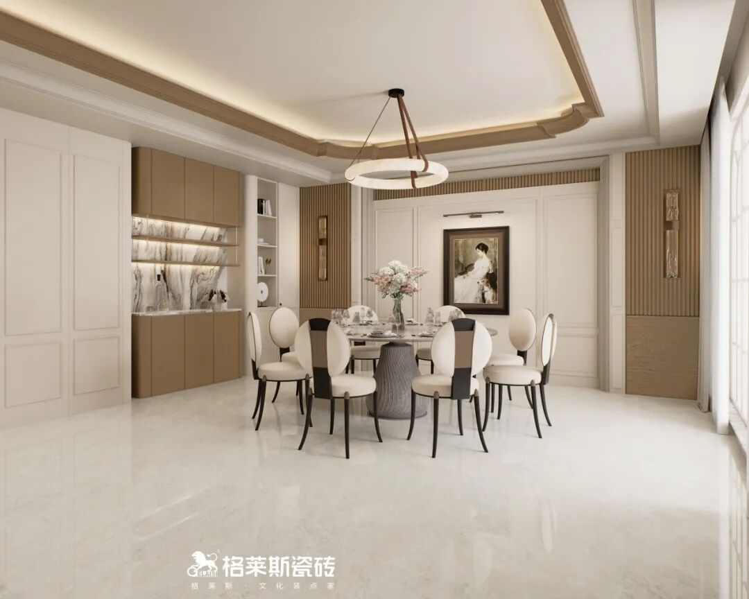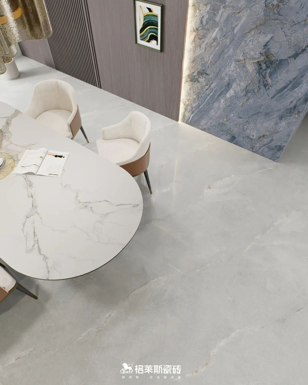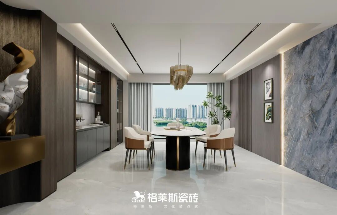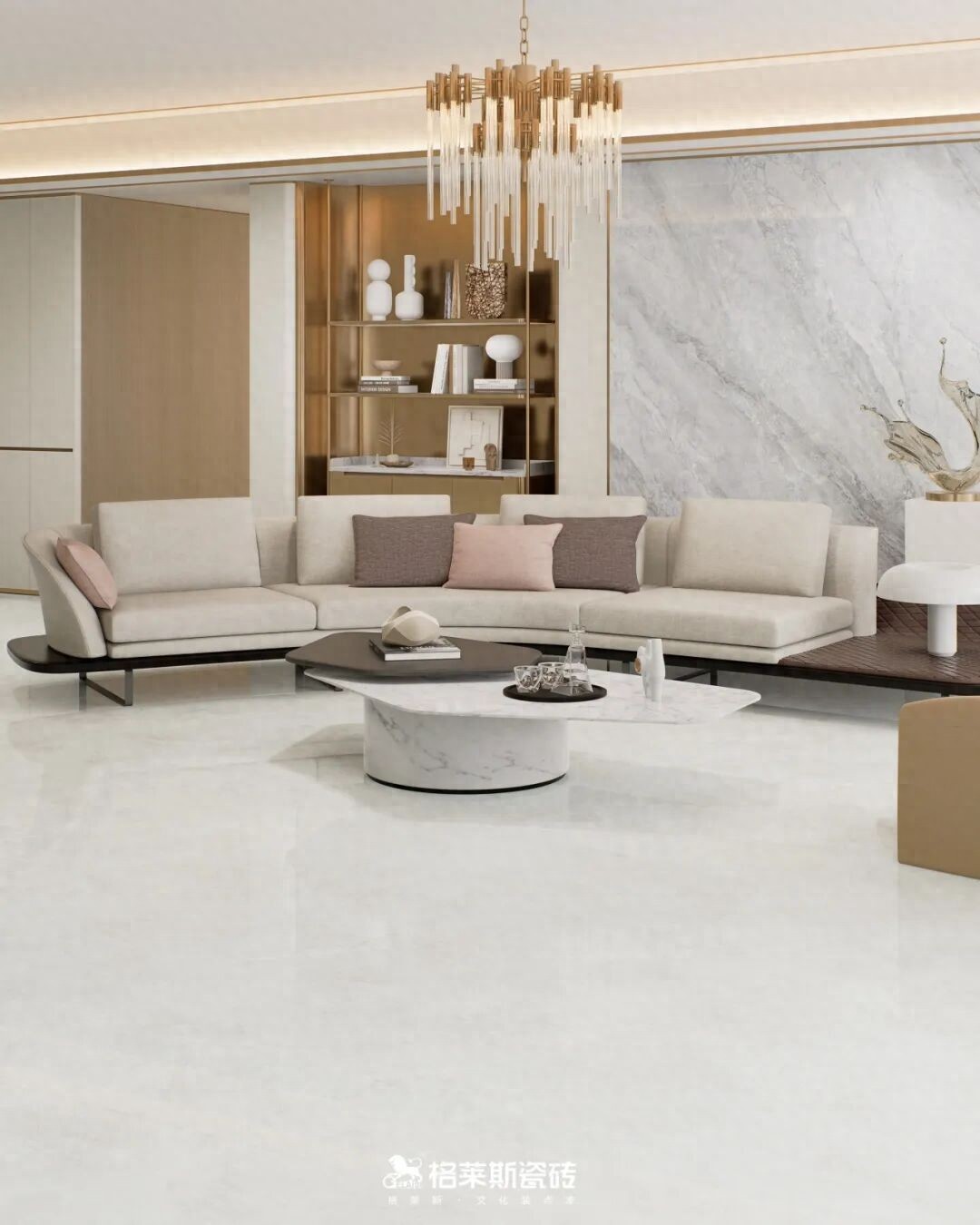 选择瓷砖时,不应盲目追随“哑光高级”等潮流,而应回归实际需求,兼顾美学与实用。采光不足的户型可选用亮光砖,配合合理灯光设计,能有效提升空间亮度与通透感。格莱斯奢理石系列采用高光釉面,增强光线反射,尤其适合改善昏暗环境。