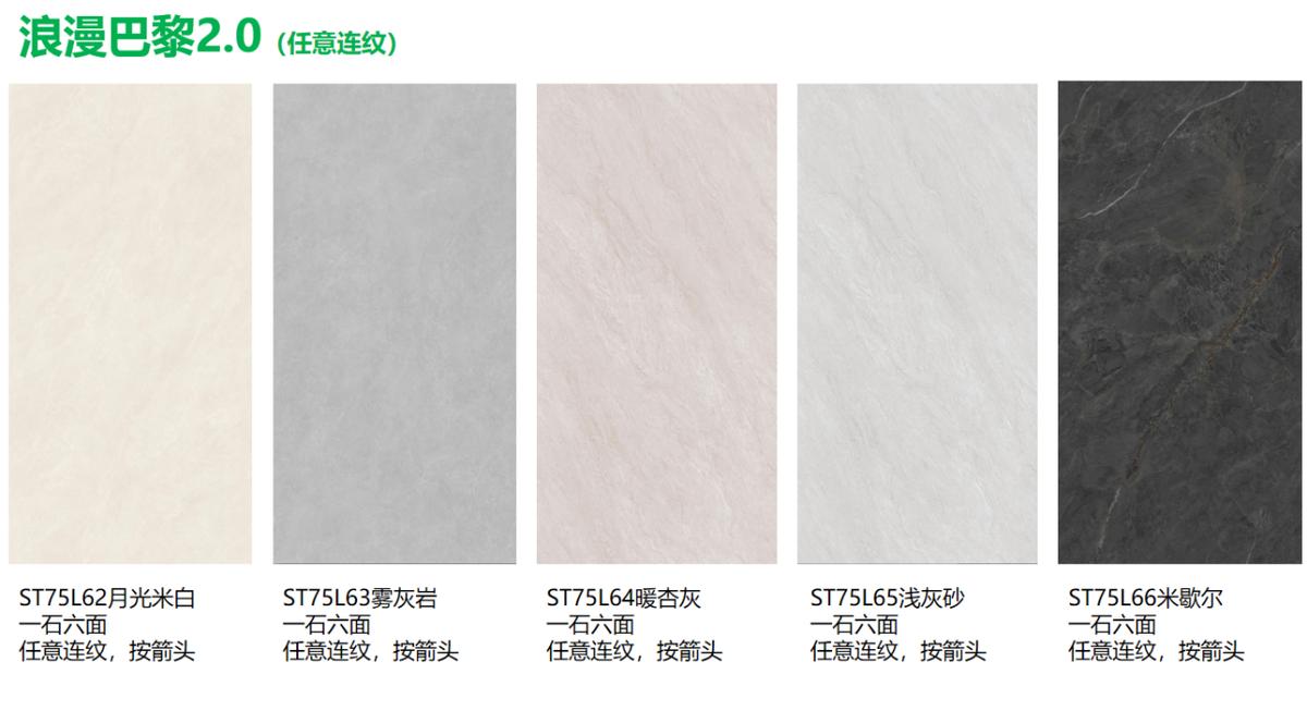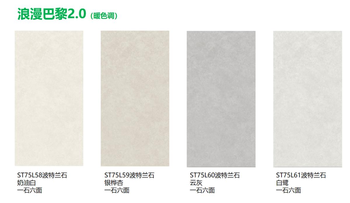 系列包含九款新品,分为两大风格:浅暖色调的波特兰石系列,如奶油白、银桦杏等,适合营造柔和空间;另一类采用理石与流水纹理,如月光米白、雾灰岩等,通过连纹设计展现大气格局。产品提供多种规格,覆盖从中小户型到大宅的全场景需求。