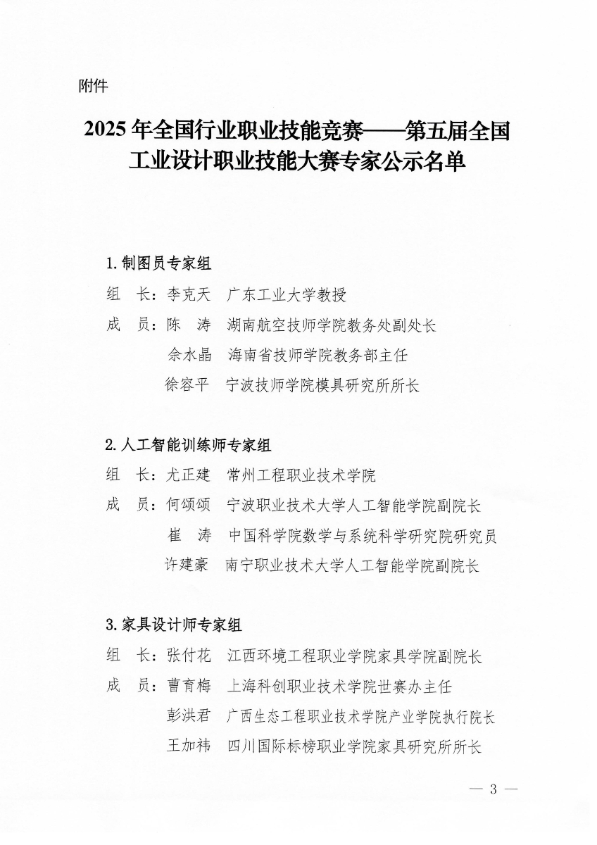 关于对第五届全国工业设计职业技能大赛专家名单进行公示的通知 ...