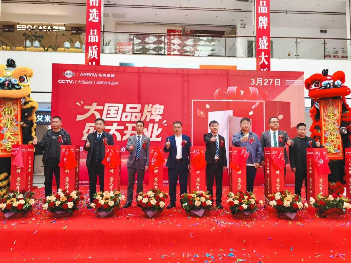 活动现场举行了箭牌瓷砖与CCTV《大国品牌》战略合作揭牌仪式,标志着品牌实力获得国家级平台认可。随后的点睛剪彩环节将气氛推向高潮,寓意事业宏图大展。