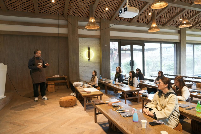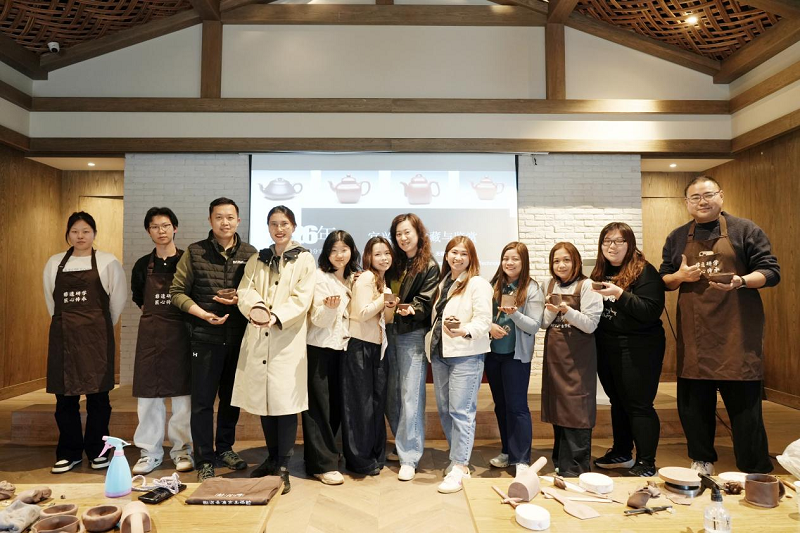 为传承紫砂非遗技艺,搭建中外文化交流桥梁,同时深化陶瓷专业实践教学,提升学生专业实操与跨文化交流能力,3月26日,陶瓷学院教师石越带领学生走进无锡拈花湾基地,开展紫砂制作非遗体验活动,热情接待菲律宾国际友人一行,让海外来客沉浸式领略中国紫砂文化的独特魅力与深厚底蕴。此次活动依托学校与无锡拈花湾文化投资发展有限公司共建的陶瓷非遗产业学院开展,该产教融合平台为活动落地提供了专业支撑,也为学生搭建了“学用结合、以践促学”的优质实践舞台。