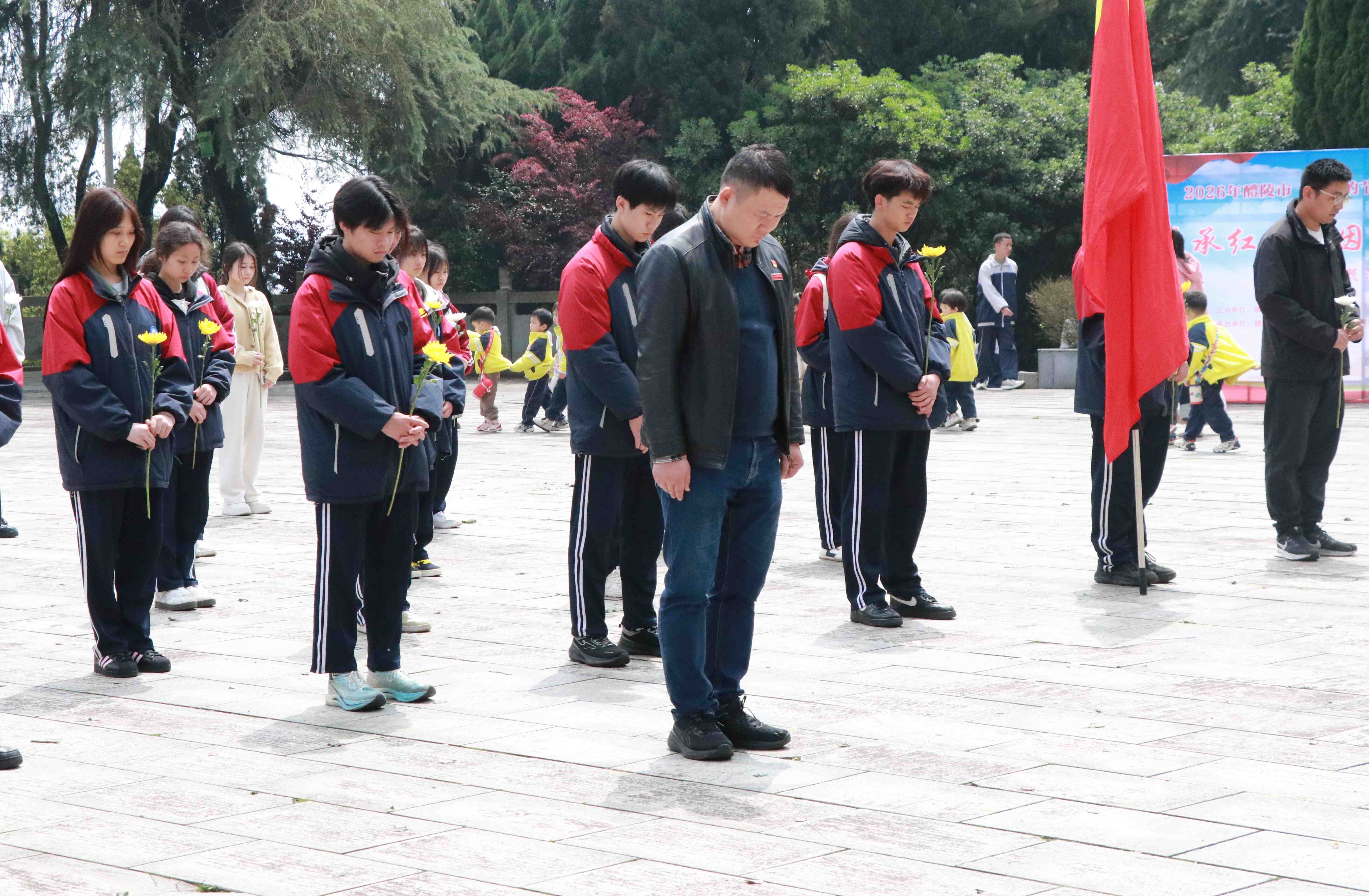 国旗护卫队向烈士纪念碑敬献花篮,全体师生鞠躬默哀,向革命烈士们集体宣誓,后分别向烈士纪念碑献花。