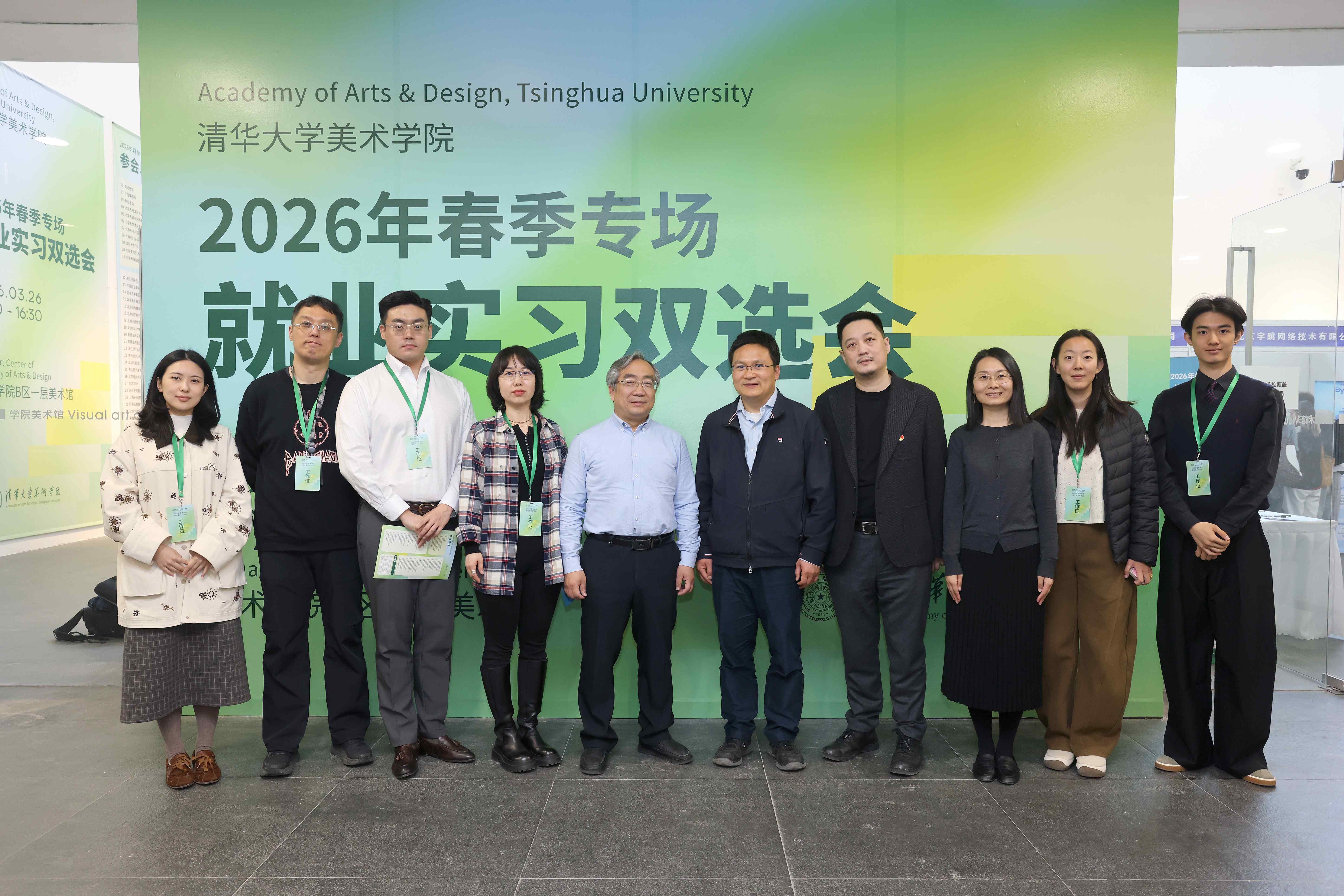 2026年3月26日,清华大学美术学院2026年春季专场就业实习双选会在美院B区一层美术馆举办。本次双选会在延续往年经验的基础上,深度聚焦国家创新创业政策、就业市场新趋势与学生多元发展需求,通过结构化创新,构建了集“能力提升—政策传导—资源拓展”于一体的综合性支持平台,吸引了众多北京市区委部门、用人单位与美院学子积极参与。