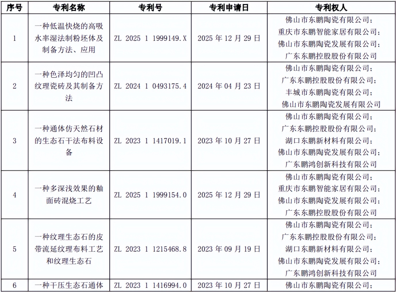 近期,建陶行业创新活跃,多家领军企业获得新专利。东鹏控股及子公司新增8项发明专利,累计专利超2500项,技术聚焦建陶与卫浴领域,强化了自主知识产权保护与市场竞争力。马可波罗联合产业链伙伴取得1项专利,共同推动绿色智能制造与产业升级。欧文莱申请光哑双定位瓷砖专利,通过优化材料与工艺,提升了产品的耐磨抗污性能及表观质量。新明珠则申请基于石材纹理的喷墨打印专利,通过分层解构与叠加技术,精准还原天然石材的色彩、脉络与质感。这些成果覆盖生产技术与产品性能核心环节,彰显企业创新实力,助力行业向高质量方向发展。