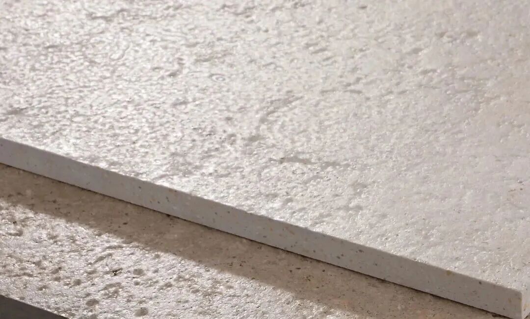 天然莱姆石由海底生物沉积经地壳作用形成,成分与人体骨骼相近,被誉为“生命之石”。莱姆石瓷砖复刻其纹理质感,表面柔光防滑,适用于侘寂、静奢等现代风格。