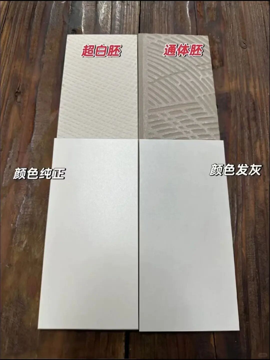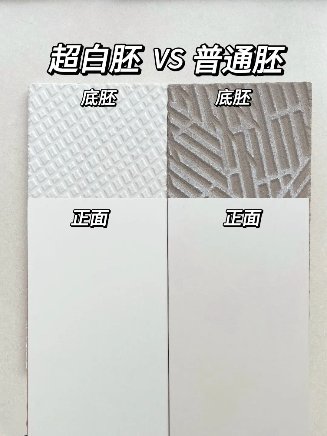 通体胚:底色偏灰、偏黄,釉面色彩附着后易泛青、发暗,纹理显得浑浊不清,空间视觉沉闷,难显高端质感。