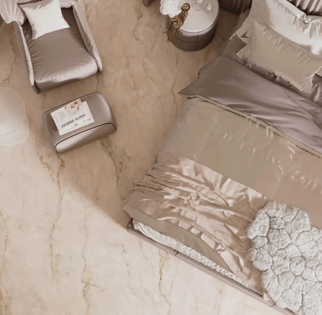 其次,它追求工艺深度。采用超细干粒与数码技术,砖面呈现立体肌理,触感温润如玉。特殊釉料模仿天然玉石的光学效果,在自然光下散发柔和光晕。