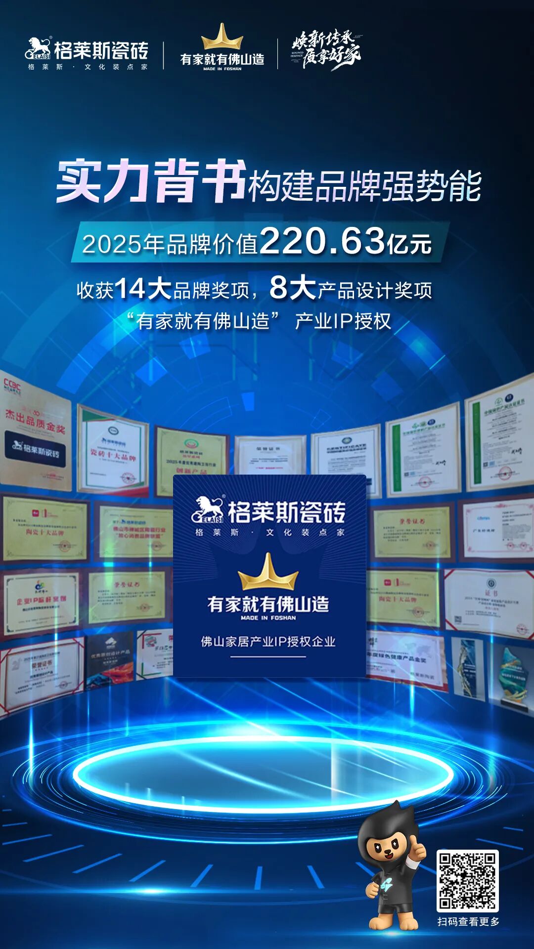 格莱斯瓷砖,作为新明珠集团旗下品牌,二十多年来始终专注于“做好瓷砖一件事”。品牌坚守品质初心,拒绝同质化竞争,依托集团研发实力,其多项技术达到国际先进乃至领先水平。凭借过硬口碑与卓越产品,格莱斯品牌价值持续攀升,荣获多项市场与行业认可。