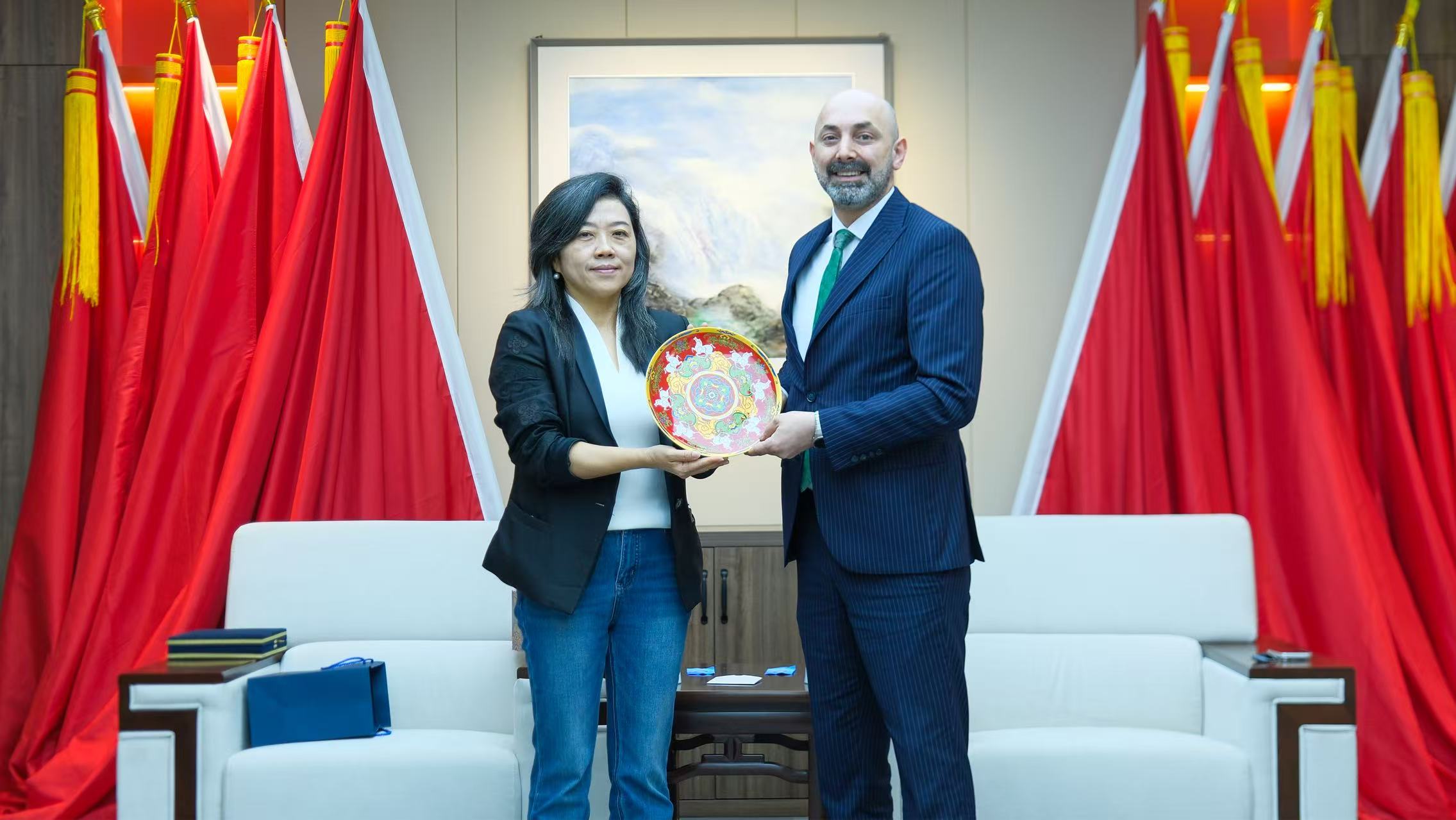 本网讯(国际合作与交流处 陈隽)近日,副校长张婧婧与土耳其伊兹尼克市副市长艾哈迈德·卡亚洽谈合作事宜,并一同参观了我校美术馆。景德镇市人民政府、景德镇市国控集团、景德镇市国信瓷立方陶瓷有限公司及景德镇陶瓷大学国际交流与合作处、科学技术处相关负责人参加此次活动。