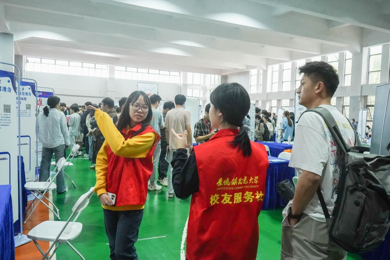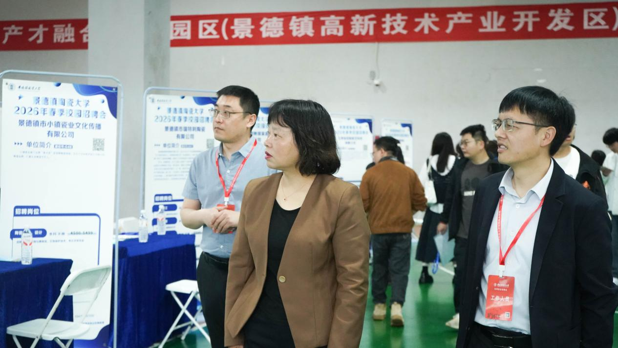 本网讯(文/赵栩瑭 张蠡丹 图/安家禾 邹艺涵 卜勤思宇 林润成)为深入贯彻落实党中央、国务院关于高校毕业生就业工作的决策部署,4月11日,由江西省教育厅主办,江西省教育评估监测研究院、景德镇陶瓷大学承办,江西陶瓷工艺美术学院联办的江西省2026届“百园万企·产才融合”工业园区专场(景德镇陶瓷大学)春季校园招聘会在我校湘湖校区室内体育馆一楼举行。校党委常委、副校长胡银娇深入现场指导工作。有关职能部门主要负责人、各学院(部、系)负责人、毕业班班主任全程参与,积极了解企业需求,现场指导学生应聘签约。