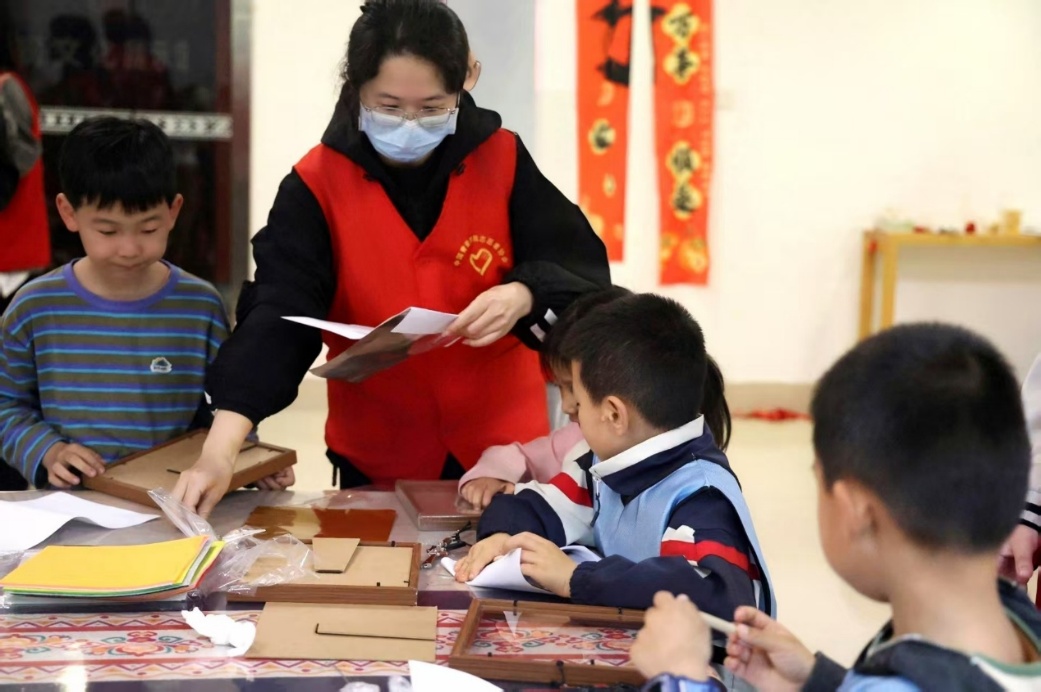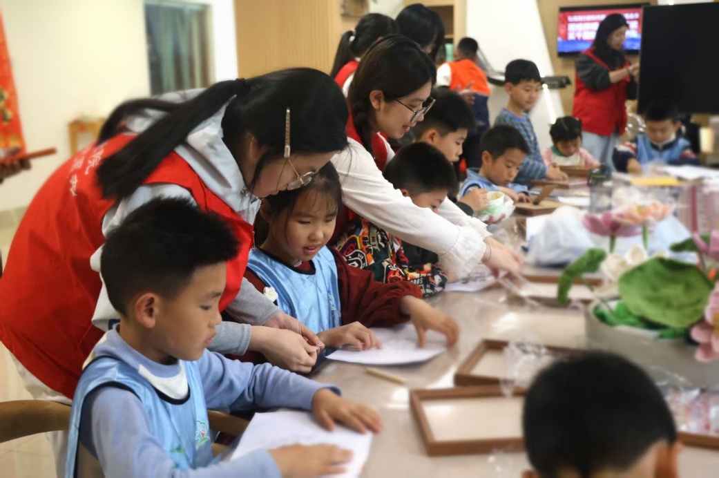 随后,每位参与者领取包含锡纸、底板、刻划工具、填充衬垫、相框等在内的 DIY 材料包,在志愿者耐心指导下开启创作。从图案设计、衬垫塑形,到刻划线条、压出浮雕质感,再到装裱成框,大家一步步实践操作,沉浸式体验传统工艺的创作乐趣。