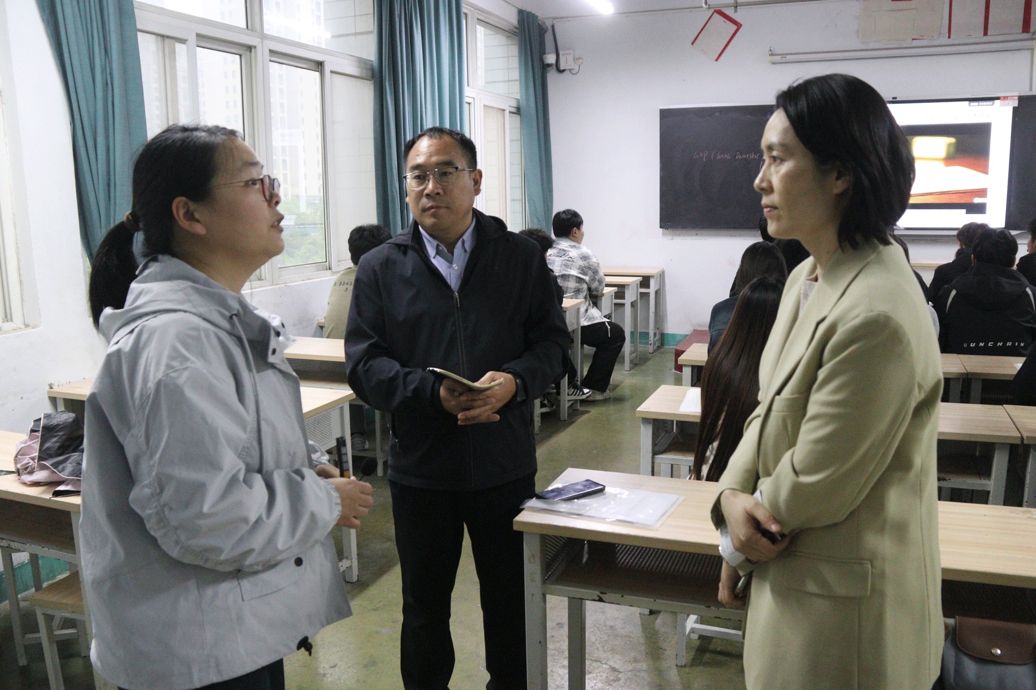 由河南中医药大学马克思主义学院院长张会萍带队的一行 4 人,以 “随机推门” 方式深入课堂,听取了田源老师讲授的《毛泽东思想和中国特色社会主义理论体系概论》专题三“新民主主义革命理论”和郑培老师讲授的《形势与政策》 专题一“夯实基础 全面发力-乘势而上、接续推进中国式现代化”。并随机向听课班级学生开展问卷调查。