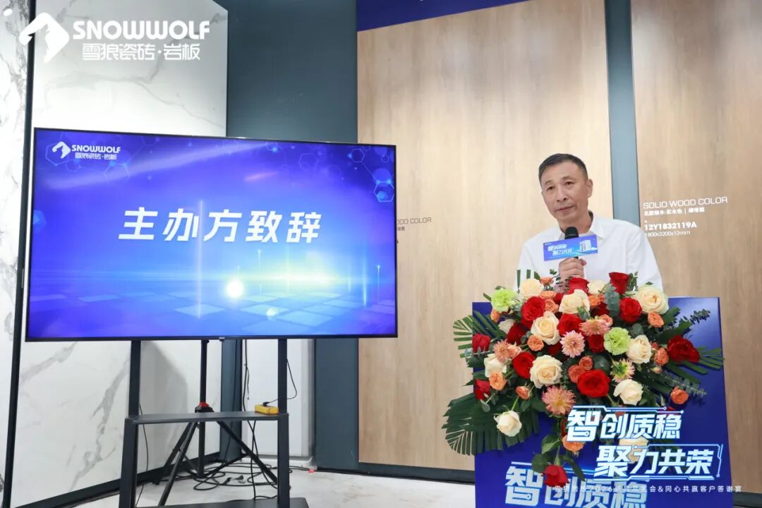 雪狼岩板董事长蔡丰安先生在晚宴致辞中重申,“品质稳定”是雪狼22年如一日坚守的源头工厂底气。然而,坚守并非固步自封,真正的“新质生产力”要求企业不仅要“质稳”,更要“智创”。
