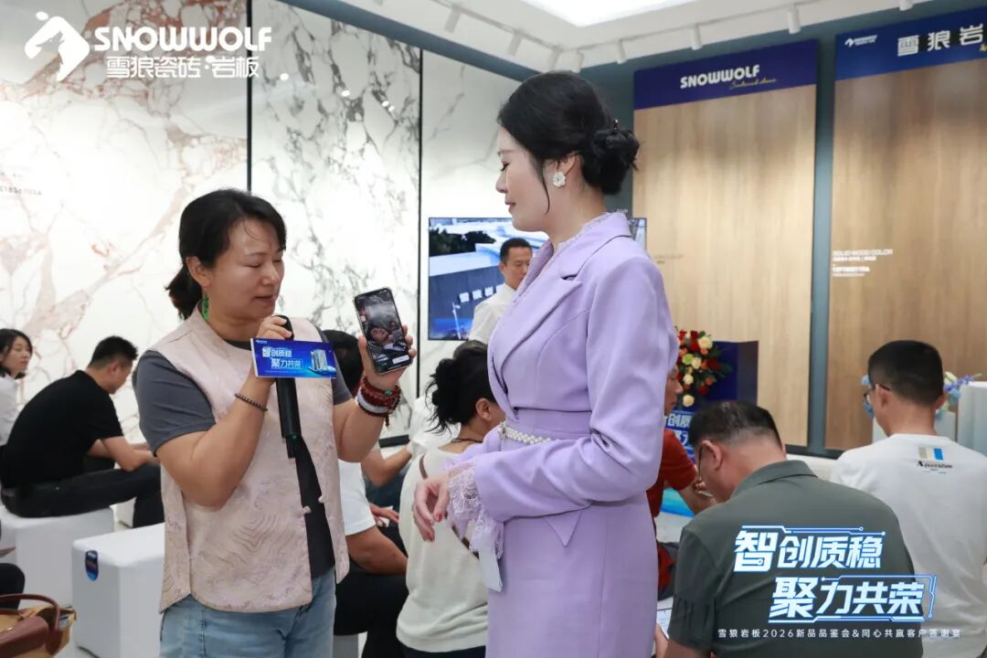 与此同时,在新品品鉴会现场,雪狼岩板还发起了邀约现场媒体代表一起参与雪狼岩板的AI短视频共创活动,通过这种方式,让冰冷的岩板产品以生动、有趣、极具网感的方式触达新生代消费群体。