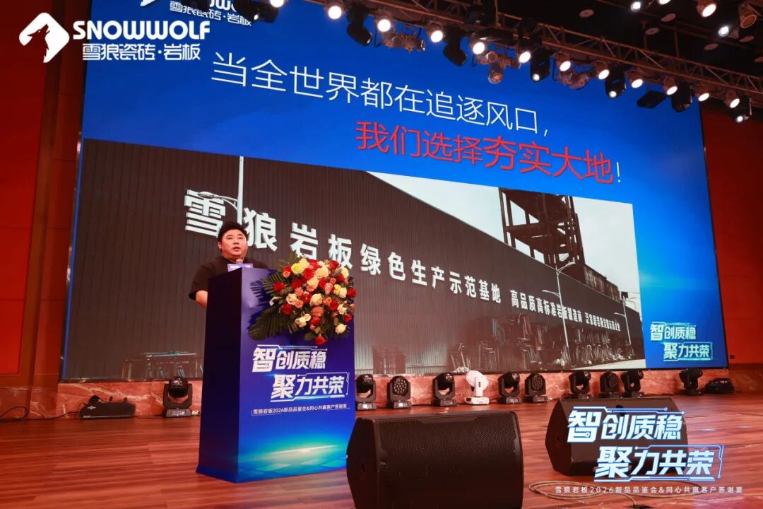 4月18日,以“智创质稳 聚力共荣”为主题,雪狼岩板2026新品品鉴会暨同心共赢财富答谢晚宴在佛山盛大举行。