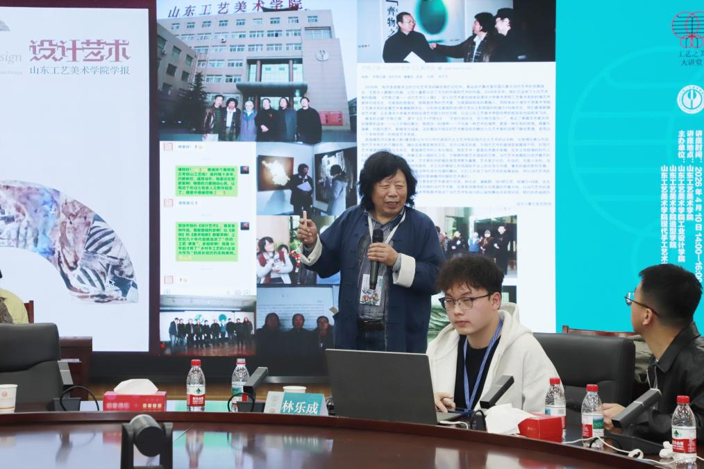 林乐成教授以《乡村手工艺的小企业大作为——以喀左戈贝兰(Gobelin)和桐乡藤编为例》为题,结合四十余年纤维艺术创作与乡村手工艺振兴实践,系统讲述了戈贝兰编织技艺引入中国、扎根乡土、融合创新并走向国际的发展历程。他以喀左、桐乡两地手工艺产业发展为鲜活案例,深入阐释乡村手工艺如何实现创造性转化、创新性发展,如何以艺术赋能乡土、以手艺带动产业、以匠心助力乡村振兴。林教授提及导师基维教授“既是画家,又是工匠,左手丹青,右手造物”,与唐绪祥教授“深耕传统、立足当代、贯通绘画与工艺”的艺术追求高度契合,林教授倡导工艺美术人才兼具艺术素养与实践能力,为学院复合型人才培养指明方向。