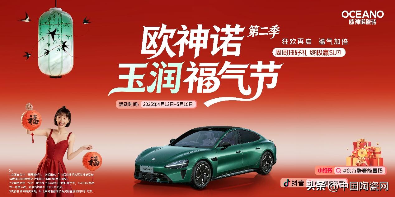 线下全国600余家门店福利升级,推出集赞赠砖、订单直补、满额抽奖等优惠,终极大奖为小米SU7。活动预热环节“玉仔出道计划”正面向全民征集IP形象设计,最高可获5000元奖金。欧神诺诚邀消费者共赴此约,将东方静奢与福运融入理想家居。