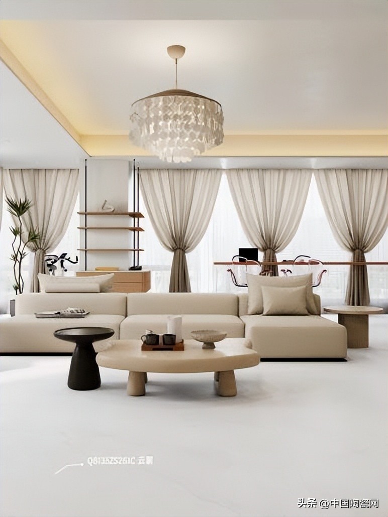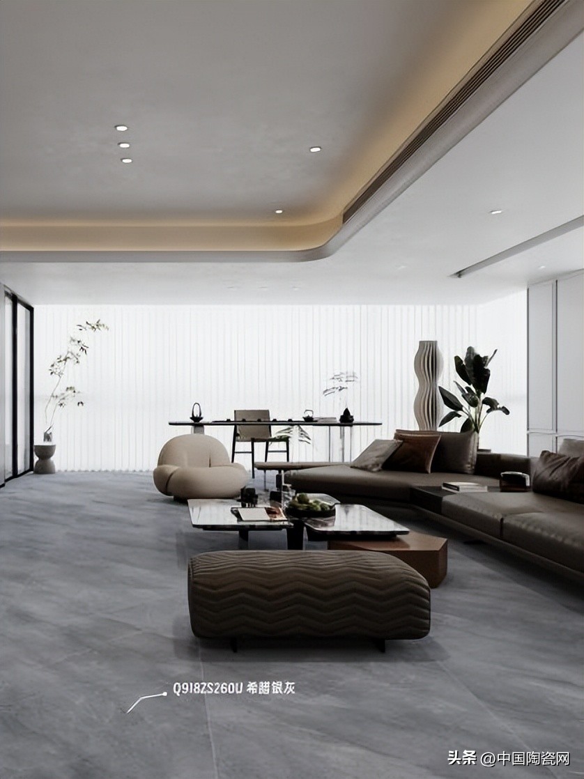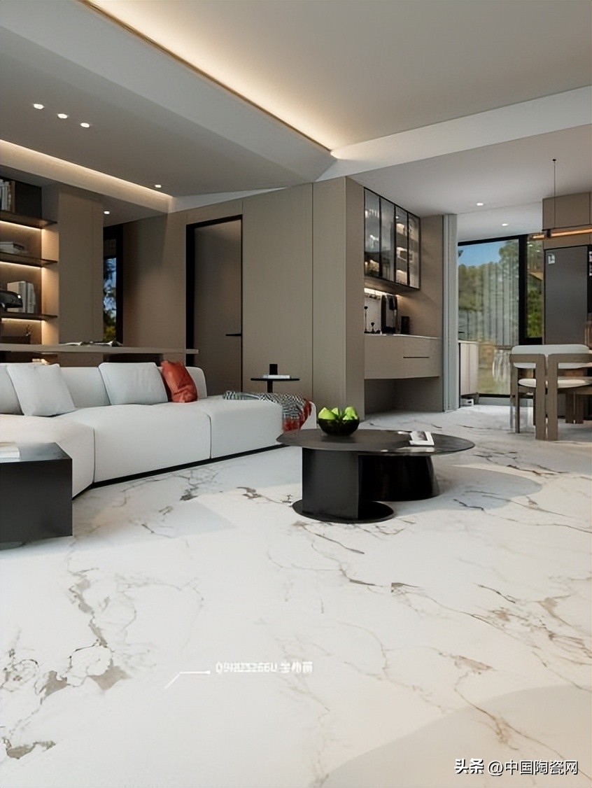 纹理上,采用全新叠色技术与高清精雕,精准还原天然原石肌理,结合超白坯体,尽显通透大气。触感经蜜蜡柔抛工艺打磨,砖面细腻温润,亲肤不冰,赤脚行走亦舒适安心。光泽柔和,11°微光营造高级视觉,久看不倦。