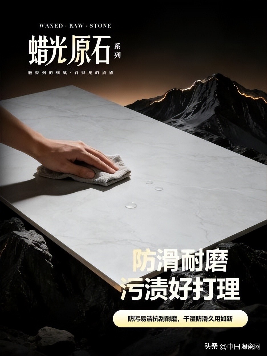 该系列具备优异防污性能,釉面致密抗渗透,日常清洁轻松。同时通过干粒互融与高温慢烧工艺实现超强耐磨,硬度高、耐刮擦,防滑安全,适用于客厅、厨房等高使用频率空间。