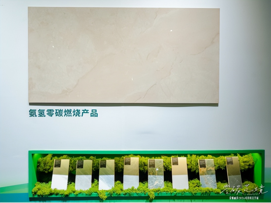 展区以大地色为基调,融合几何理性与自然肌理,诠释“以零碳做减法、以美学做加法”的理念。企业依托全球首条陶瓷工业氨氢零碳燃烧示范线,推动技术产业化,构建零碳材料矩阵,推出陶瓷薄板、艺术陶瓷板等低碳产品,并首次展出低耗健康的晶石板新材。