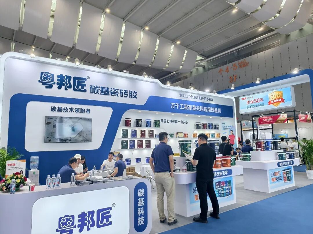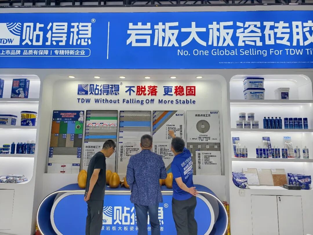 作为岩板大板瓷砖胶全球领导者,贴得稳此次展会主要展示防脱落核心技术、高碳纤维系列新品及全链条赋能体系。
