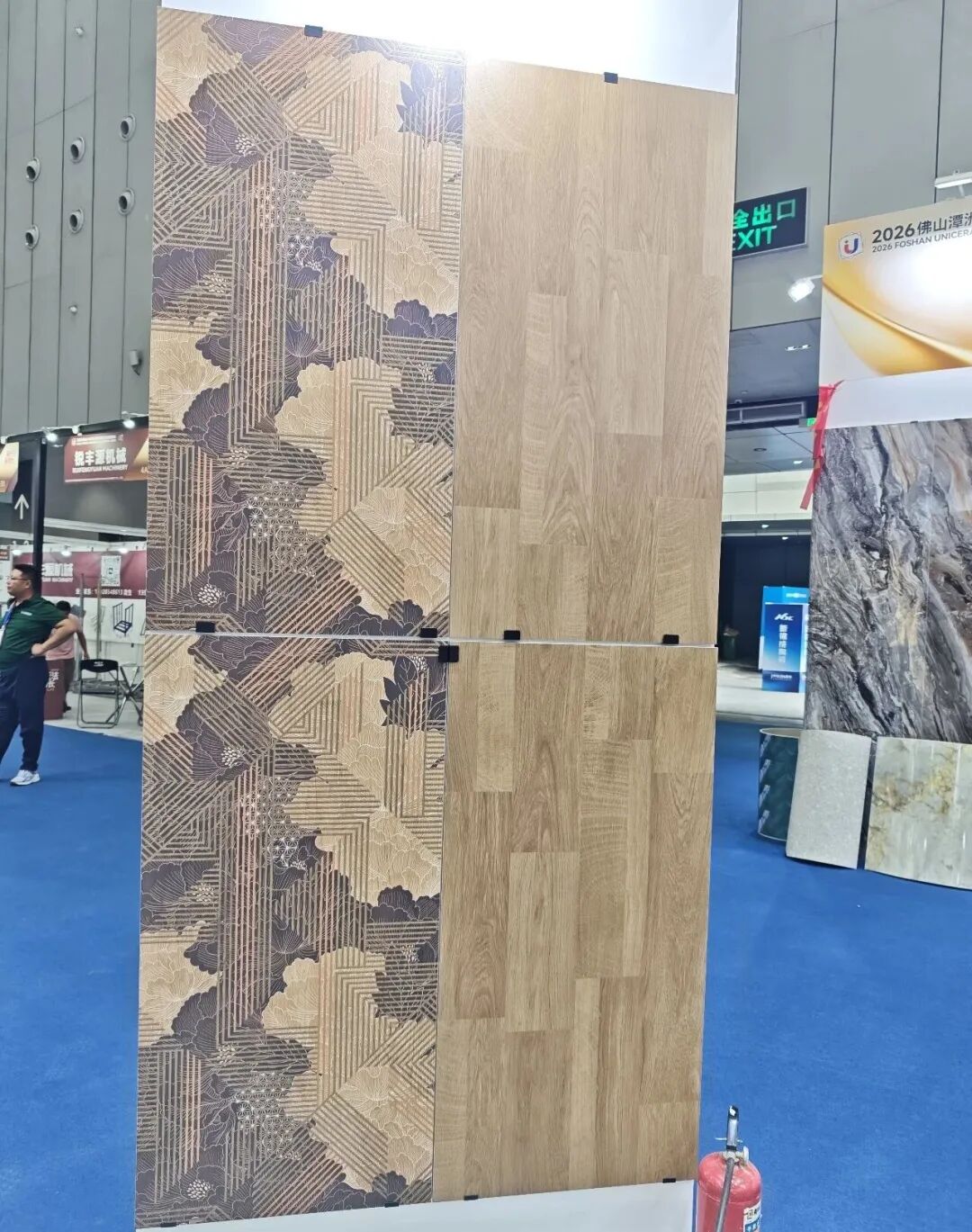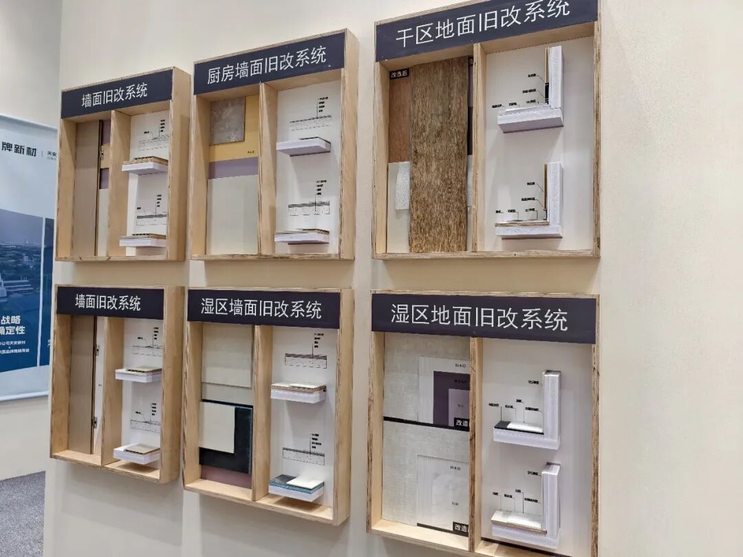 此次展会,鹰牌新材展示了其核心产品,涵盖硅藻科技墙板、安芯墙板、石晶地板、石晶墙板、防滑地胶等,具有环保、防潮、防火、耐磨等特性,适用于旧房翻新、公区改造等场景。