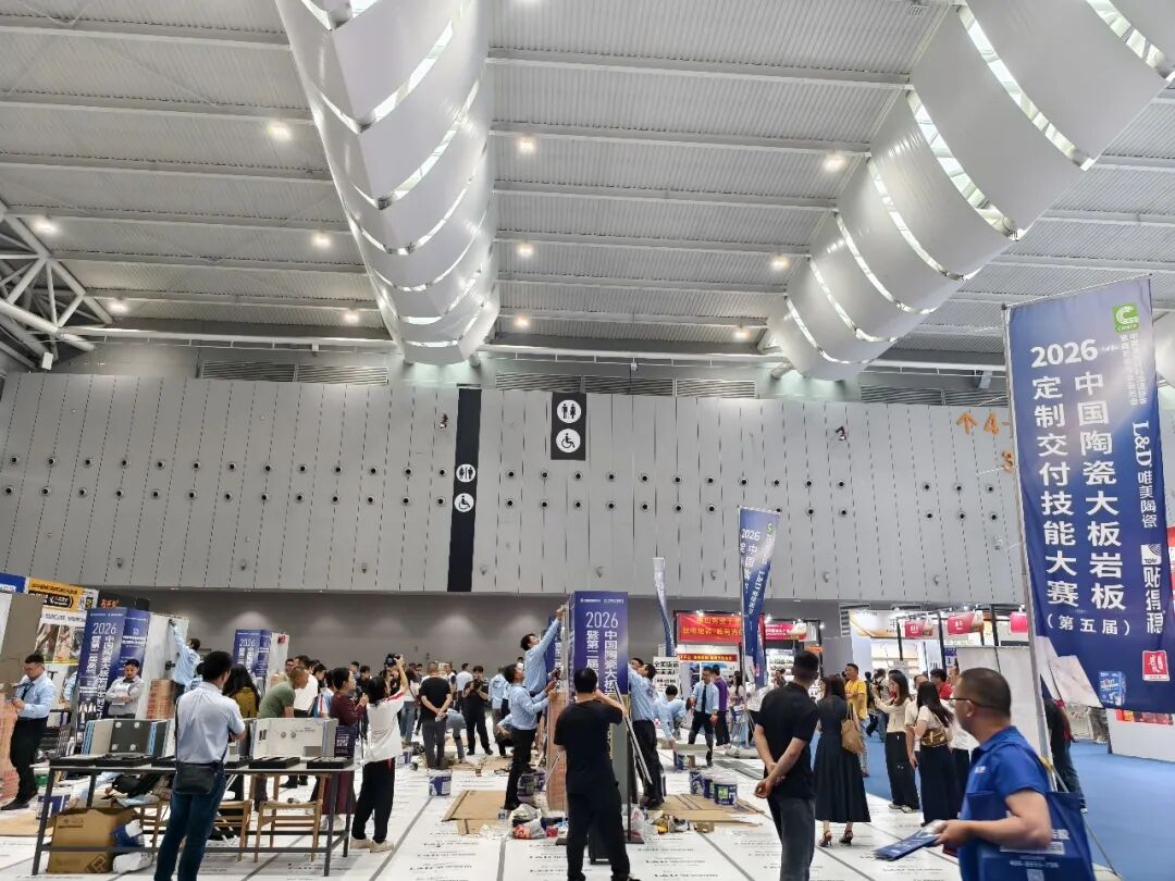 此外,3号馆还设置了铺贴大赛专区,2026中国陶瓷大板岩板定制交付技能大赛正在火热进行中,大赛颁奖典礼将于4月21日下午举行。