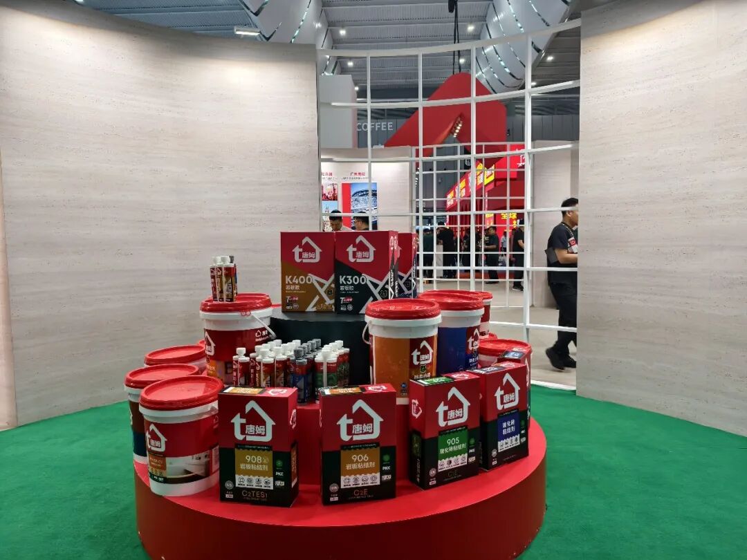 其中,唐姆岩板胶凭借超强粘结力、抗裂抗震性能及延长晾置时间等优势,致力于解决岩板铺贴痛点,助力行业实现精准交付,是此次展会辅材领域的亮点之一。