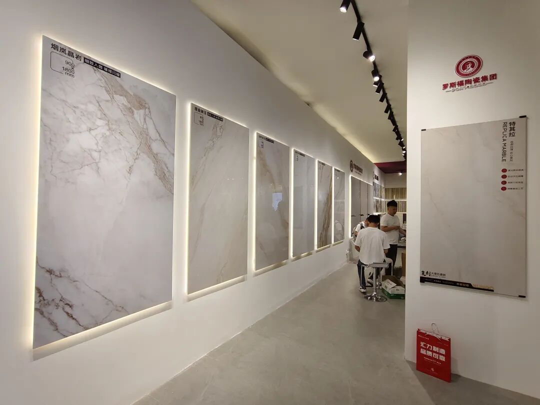 罗斯福带来了复刻大理石3.0系列、微光干粒系列、微光原木系列产品。其中,复刻大理石3.0采用第三代复刻釉技术,攻克釉面桔皮难题,实现从2D高清纹理到3D立体肌理的跨越,带来立体触感、9°哑光等五重感官体验。