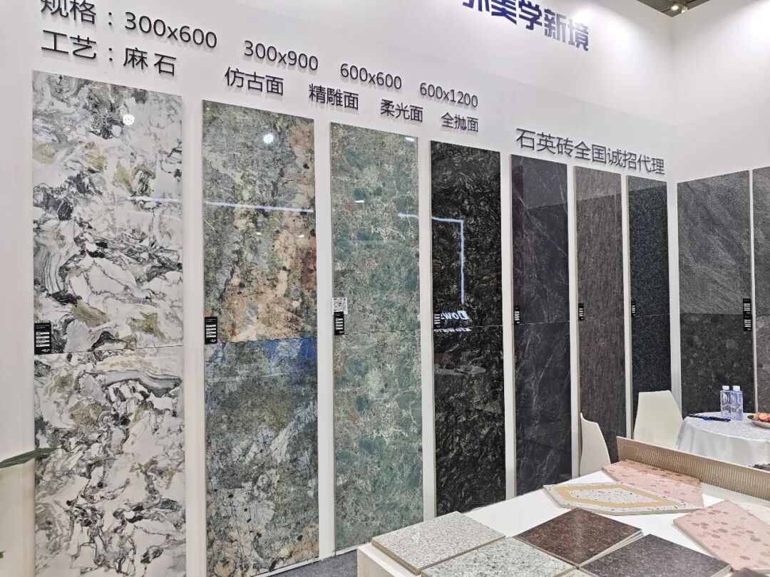 作为专注于绿色陶瓷研发与生产的创新企业,新峰集团此次参展聚焦其核心优势——再生资源陶瓷技术,展示以煤矸石高值化、低碳化应用为核心的陶瓷新品,包括大理石瓷砖、生态砖、地铺石、透水砖、环保装饰材料等,体现其在绿色制造领域的创新成果。