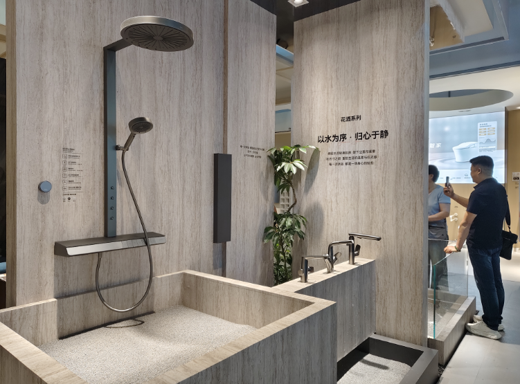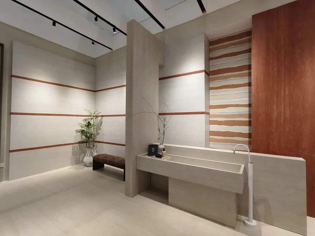 整个展馆以“自在东方”为主题,通过瓷砖、岩板、卫浴五金等品类跨界融合,呈现全场景家居空间解决方案,诠释“绿色健康·东方美学”的核心理念,为观众提供从设计到落地的灵感与参考。