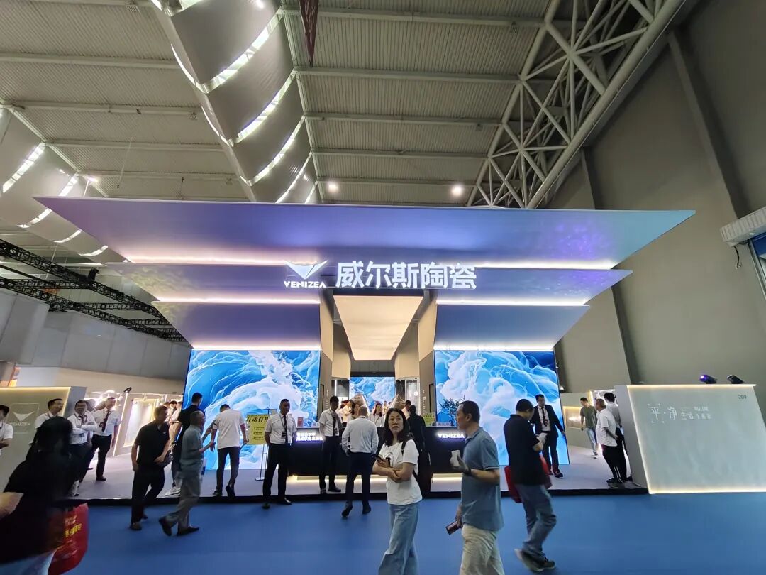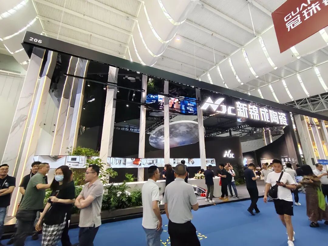 新锦成以 “交个‘新’朋友” 为主题,营造开放、创新的交流氛围。重点展出了两大战略新品系列:主打极致洁净体验的“闪净”系列和代表高品质标准的“5A柔光砖-跨界石”系列。这两大系列分别从“用户情绪价值”和“硬核品质标准”两个维度,展现了品牌对市场需求的深度洞察与工艺实力。