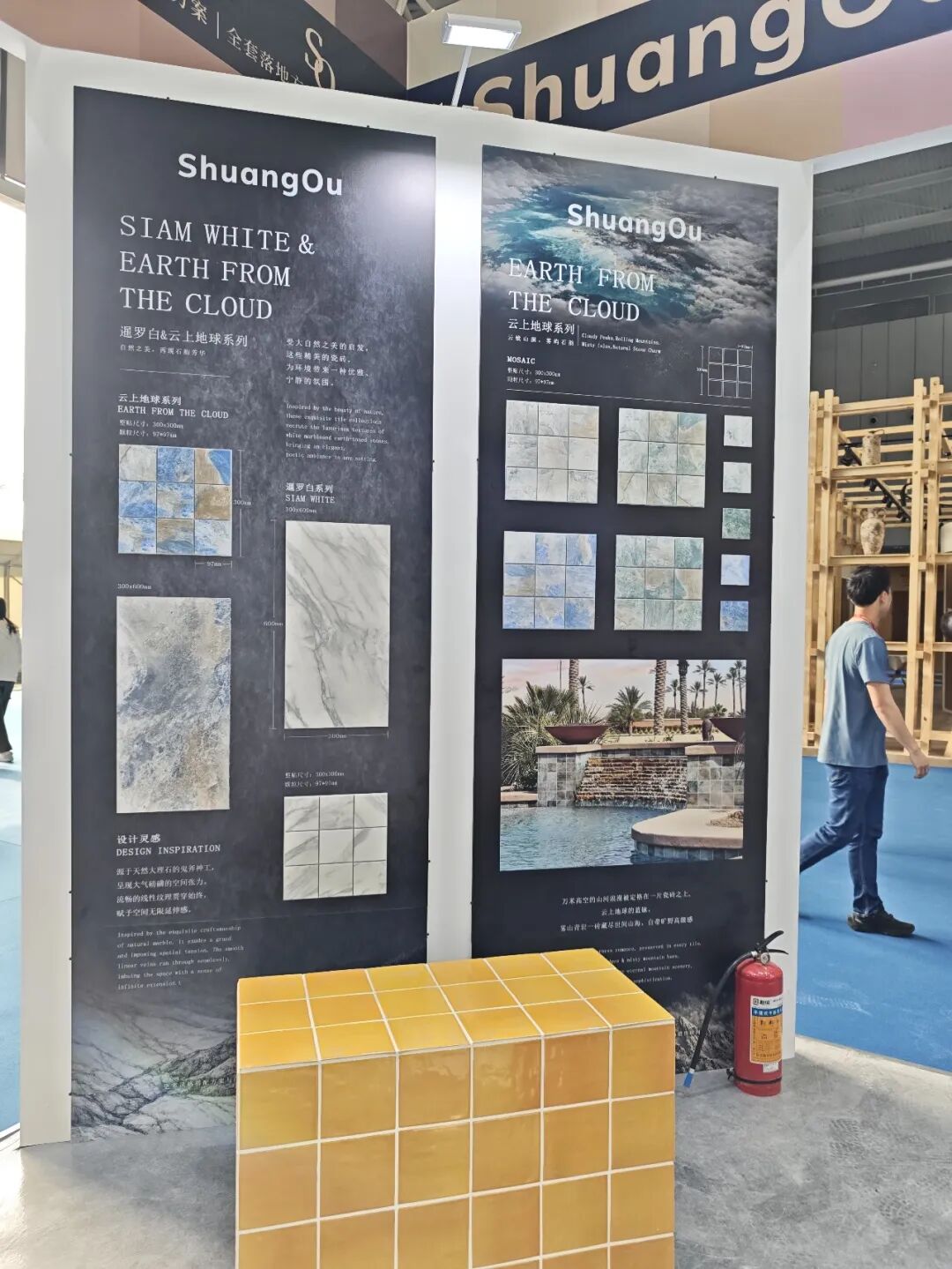 第一次参展便让人留下深刻印象的,当属旭日集团旗下的白兔瓷砖、梵仕森瓷砖和泥也瓷砖。