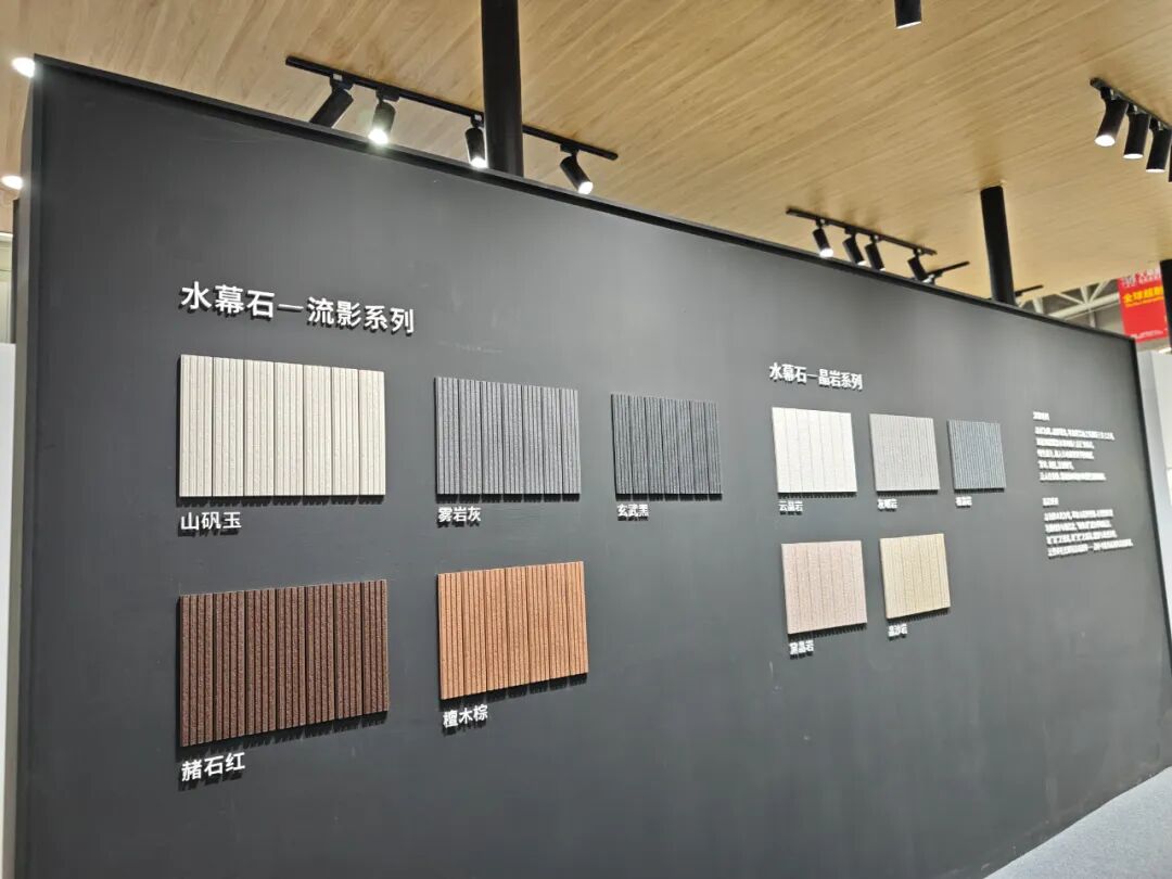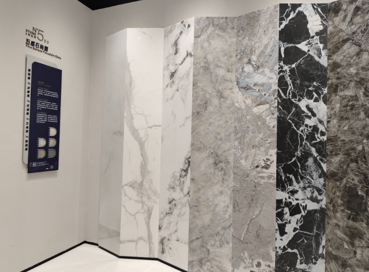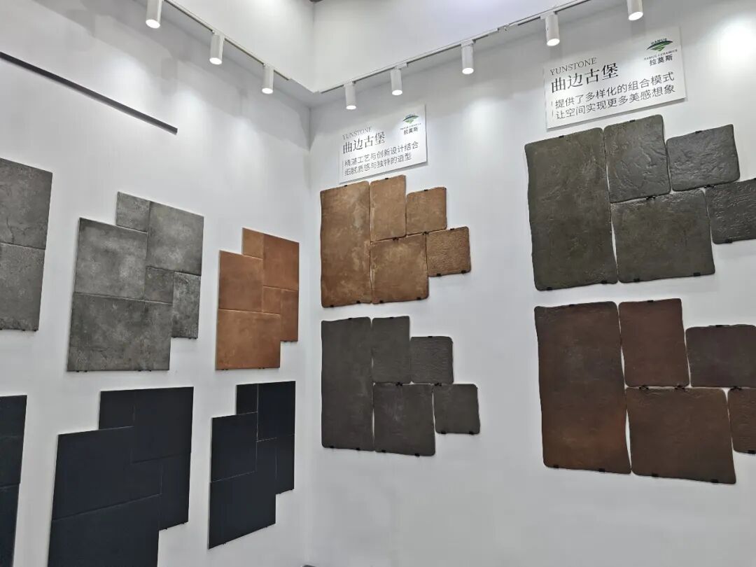 狮王瓷砖重点展示的是品牌在高端石材质感瓷砖领域的创新力作——云脉石S系列。该系列产品突破传统二维平面质感局限,通过创新工艺打造“高、中、低”三层立体层次,纹理起伏自然流畅,触感细腻温润,高度还原天然石材的原生质感,视觉与触觉体验双重升级。