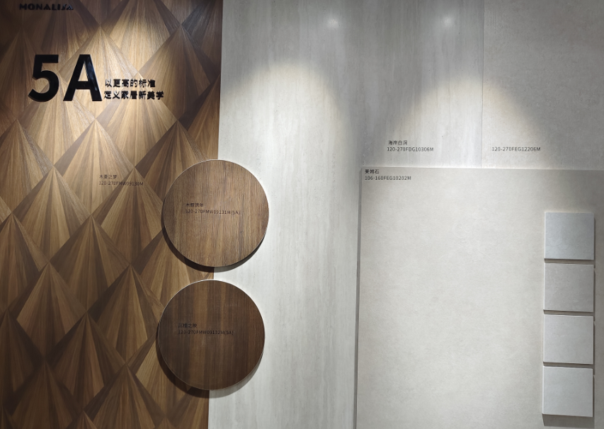 蒙娜丽莎还带来了其2026年“5A”新品,以森林为灵感,用光与影、木与石构建沉浸式场域,展示无极·石界、无极·木歌等系列产品。新品以严苛的物性指标为核心,致力于构建高端、多元的全场景品质生态。